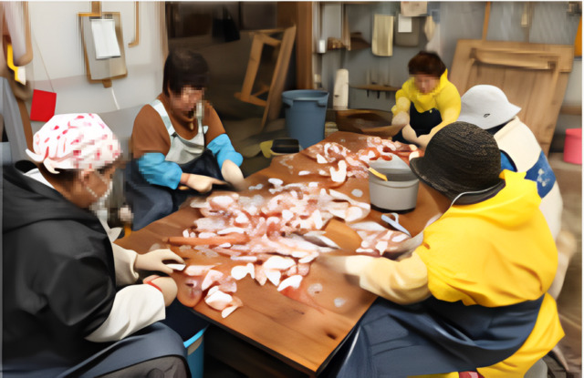 漁港から加工場(地魚の骨と皮を取り除く)までは目と鼻の先。